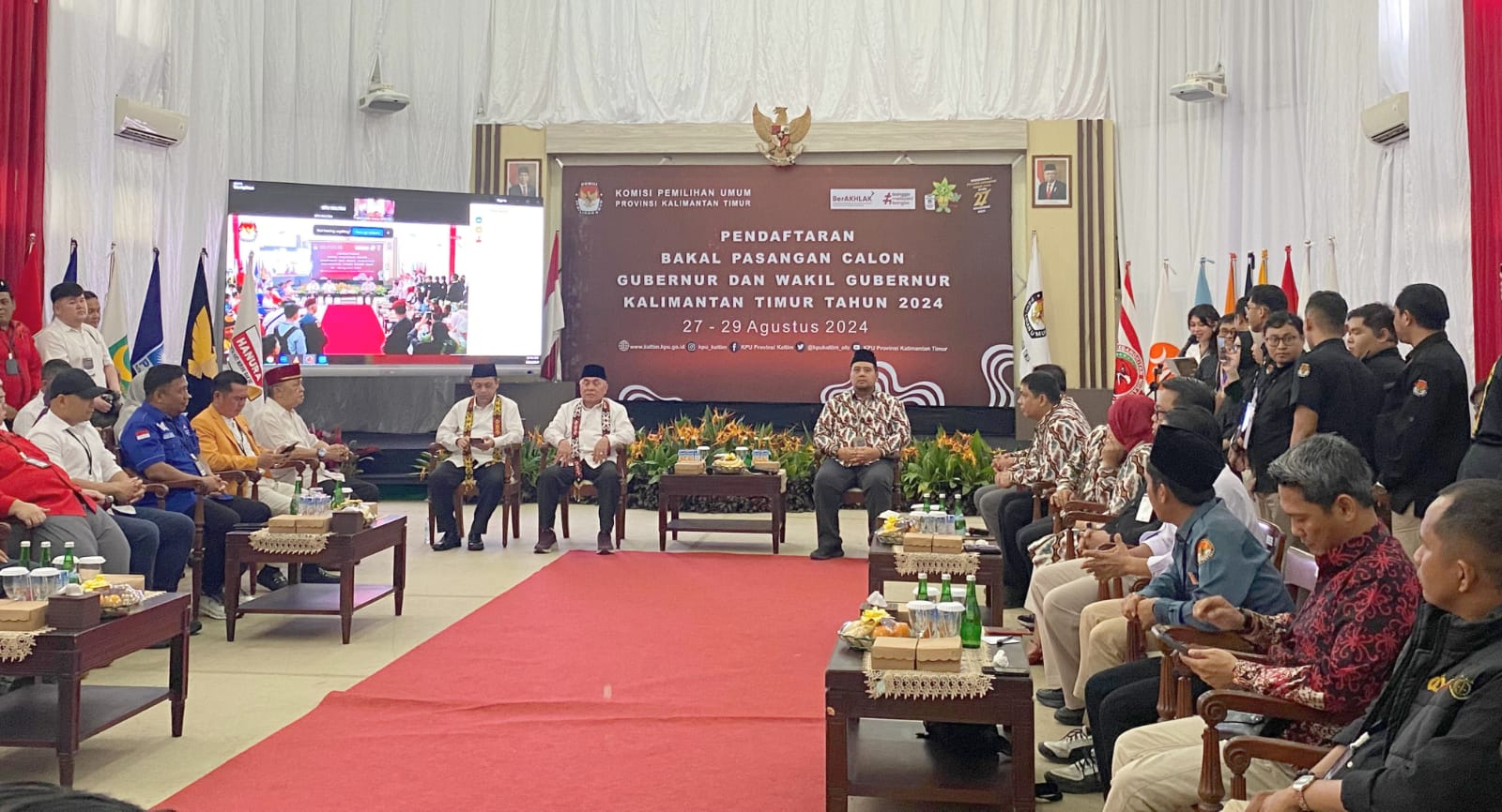“Alhamdulillah, proses pendaftaran berjalan dengan lancar. Kami didukung oleh enam partai politik, yakni PDIP, Partai Demokrat, Partai Gelora, Partai Hanura, Partai Ummat, dan Partai Perindo,” ujar Isran dalam sesi konferensi pers.